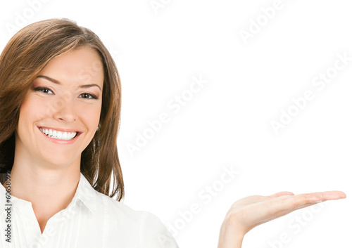 Businesswoman showing something or holding