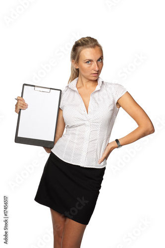 Businesswoman shows blank clipboard