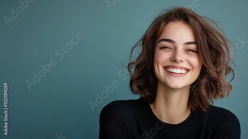 Businesswoman smiling while on a video call with colleagues, remote work satisfaction, virtual teamwork