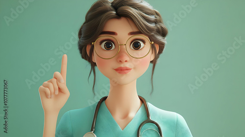 Cartoon Illustration of a Female Doctor with a Stethoscope