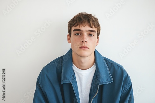 Casual portrait of a young man in a blue jacket, creating a relaxed yet stylish vibe, ideal for contemporary lifestyle or fashion branding imagery.