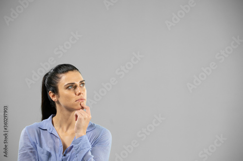Caucasian woman on grey background
