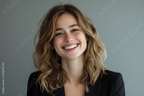 Cheerful and Confident Woman Working on Computer in Crisp Lighting