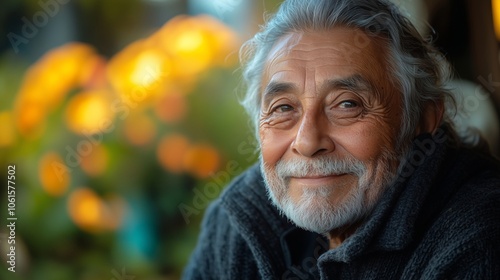 Cheerful Close Up of an Elderly Man Surrounded by Nature