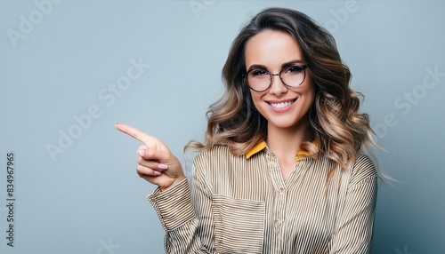 Cheerful Pointer: Smiling Woman with Wavy Hair