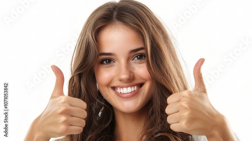 Cheerful Young Woman Smiling with Thumbs Up Gesture