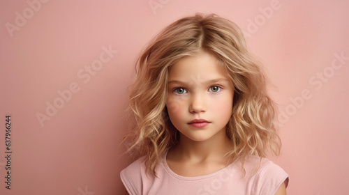Child girl against a light pink background. Generative AI
