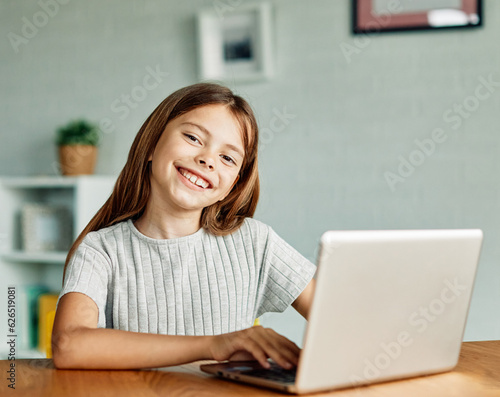 child laptop computer technology home girl education homework teenage learning kid internet childhood student teen using online young happy