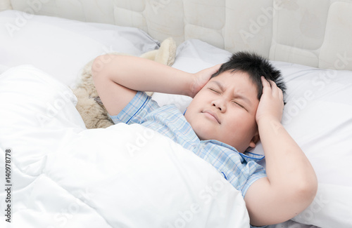 Child lying down suffering from a headache.