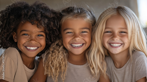 Children with joyful expressions posing together in natural light at an outdoor location during daytime