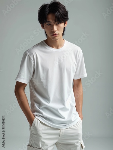Classic and Simple Men's White Tshirt Mockup - Front View