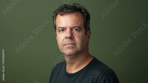 Classic Portrait of a Middle-Aged Man with Graying Hair on Green Background - High-Resolution Image