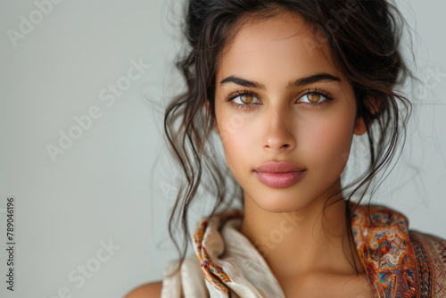 Clean indian woman face and fresh skin for fashion and beauty care ads