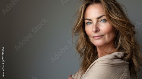 Close up Beautiful gorgeous mid aged woman. Portrait of mature old lady. Menopause. Healthy face skin care, skincare cosmetics.