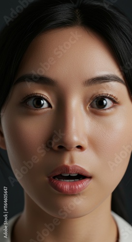 Close up of Asian Woman face, Surprised Shock Shocked Expression, Zoom In, Zoomed Portrait
