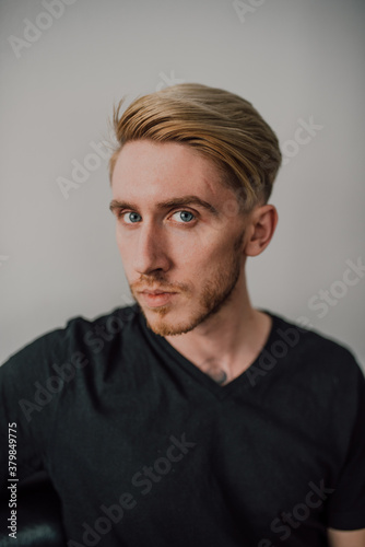Close up of handsome young man indoor