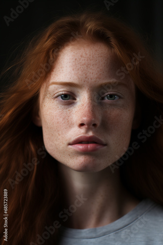 Close up of red haired woman with freckles, ai generated