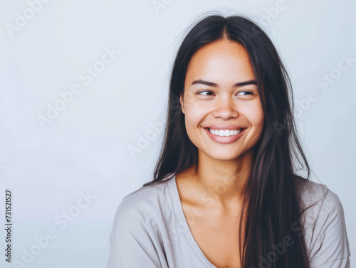 Close up portrait of a happy young woman isolated from a white background copy space for text.