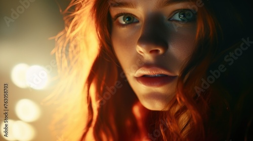 Close up portrait of a woman with vibrant red hair. Perfect for beauty and fashion concepts