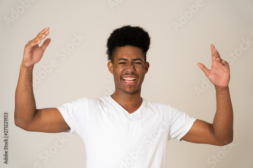 Close up portrait of surprised and happy man celebrating victory and wining team or lottery