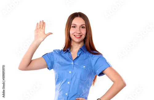 Close up portrait of young beautiful girl having fun. Natural makeup