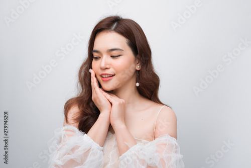 Closeup beautiful young asian woman face isolated on white