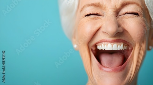 close-up panoramic of senior women laughing, dynamic framing, radiant positivity, natural wrinkles, isolated on white background