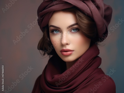 Close-up photo of a beautiful charming woman with beautiful wavy hair and wearing fashionable clothes in modern colors. Style, beauty and fashion concept