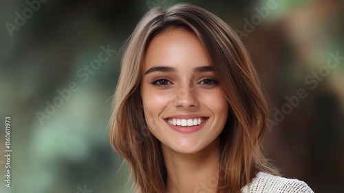 Close-up Photo: Radiant Woman Smiling Joyfully Outdoors. AI Generated