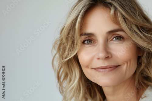 Close-up portrait of a beautiful senior woman with grey hair and fair skin, isolated on a white background. Beauty cosmetic, skincare, facial treatment, wellness and healthy lifestyle concept.