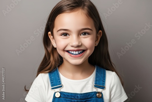 Closeup Portrait of a Cute Young Girl Smiling with Beautiful Teeth for Dental Advertising