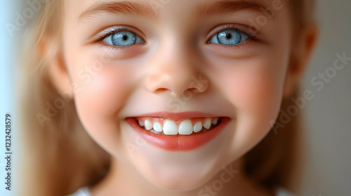 Close-up Portrait of a Smiling Youngster with Bright Blue Eyes and Healthy White Teeth Shows Genuine Happiness and Joy