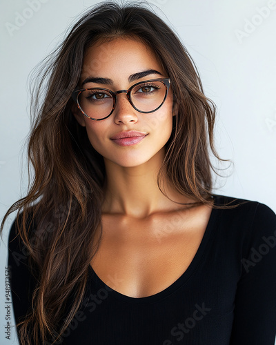 close-up portrait of a woman with glasses