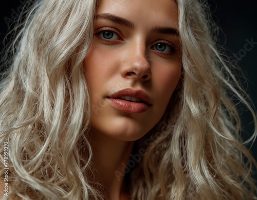 Close-up portrait of a young beautiful blonde woman without makeup