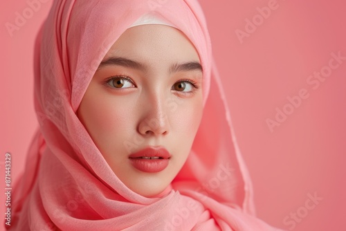 Close-Up Portrait of a Young Woman in a Pink Hijab
