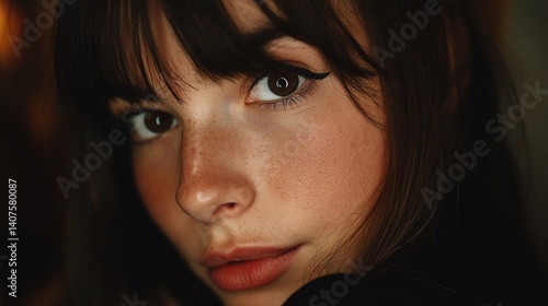 Close-Up Portrait of an Attractive Young Woman with Soft Features