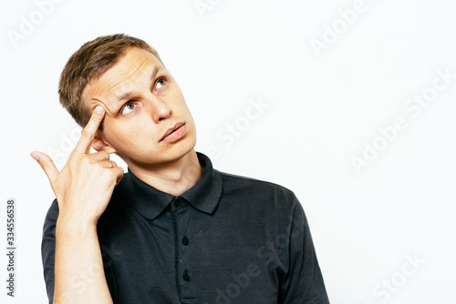 Closeup portrait of angry man gesturing with his finger against his temple, are you crazy?