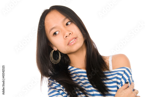 Close-up portrait of Asian girl look aside