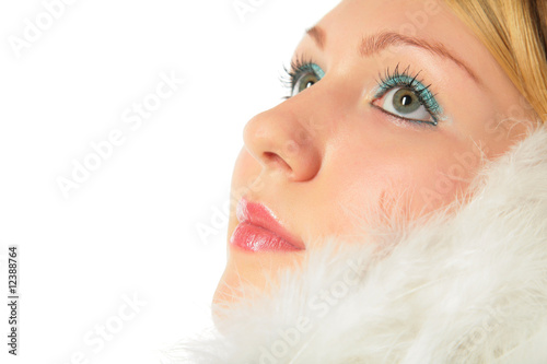 Close-up portrait of blonde girl in angel's costume