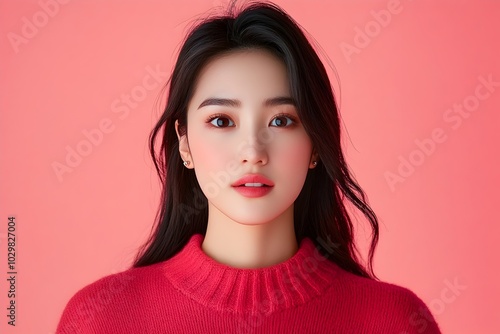 Closeup Portrait of Confident Asian Woman Taking Probiotic Supplement