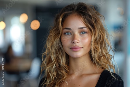 Close-up Portrait of Naturally Beautiful Young Woman with Freckles and Blue Eyes