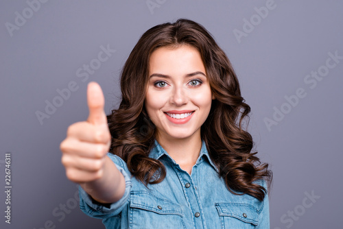 Close-up portrait of stylish nice cute charming lovely attractiv