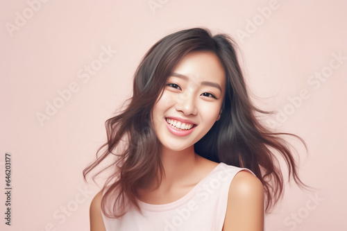 Close-up portrait of woman nice attractive lovely pretty cheerful cheery glad wavy-haired girl folded arms isolated over nude pastel color background. Generative AI.