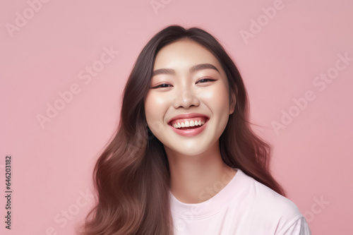 Close-up portrait of woman nice attractive lovely pretty cheerful cheery glad wavy-haired girl folded arms isolated over nude pastel color background. Generative AI.