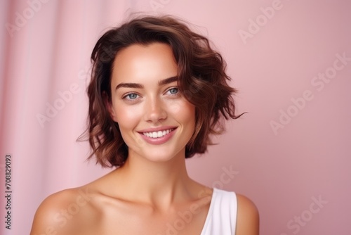 Close-up portrait of yong woman casual portrait of aucasian Asian, african american portrait woman on pastel background , Generative AI