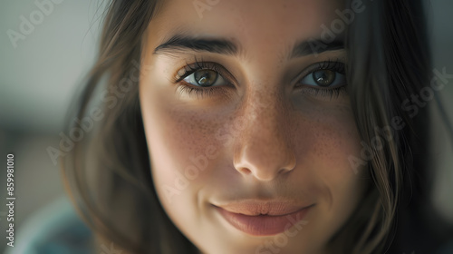 closeup portrait of young happy woman looking in camera : Generative AI