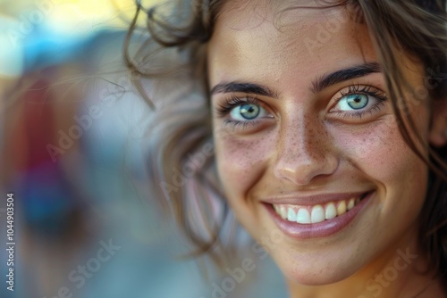Close-up shot of a woman's face featuring freckles