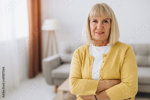 Comfort relaxed senior old elderly woman grandmother at home in the living room.