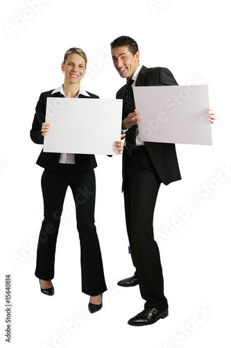 Commerciaux en costume avec pancartes pour message
