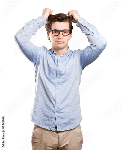 Concerned young man with a depression gesture